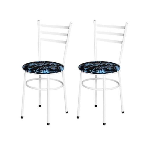 2 Cadeiras Para Mesa Epoxi Branca Assento Estampado Cor:floral Preto