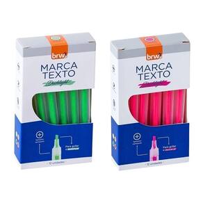 - 2 Caixas Marca Texto Fluorescente Transparente 12 UNIDADES BRW (cor selecionada).