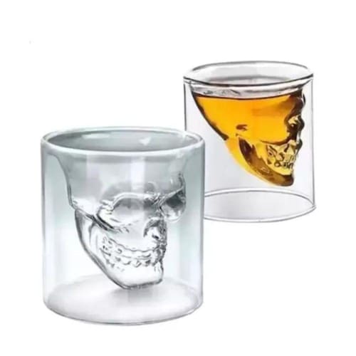 Copo Duplo Caveira Jogo de copos duplos em formato de caveira, feitos em vidro, esse item traz sofisticação para seu drink, ideal para eventos, festas ou como preferir. Informações: Contém 2 copos para dose Material : Vidro Validade Indeterminada Cuidados : Lave o produto com sabão neutro e eponja macia, evite produto abrasivos na limpeza para não comprometer a peçaVariações : 150 ml Marca: Haukraft