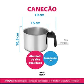 Canecão fervedor leiteira de alumínio polido, perfeito para esquentar água, chá e leite 1,6L Composição do kit: 2 Canecão de 1,6L Praticidade e durabilidade para o seu dia a dia Nosso canecão de alumínio é perfeito para ferver e esquentar água, leite e outras bebidas com rapidez e eficiência. Feito de alumínio leve e resistente, garante um aquecimento uniforme, além de ser fácil de manusear e limpar. Ideal para uso doméstico ou , ele é um item indispensável na sua cozinha. Garanta já o seu e facilite sua rotina Características: Canecão médio para esquentar água ou leite com capacidade de 1,6L Feita de alumínio polido de alta qualidade Alças reforçadas Prático Durável Aquecimento rápido e uniforme Certificada pelo Inmetro 427/2019 Acompanha manual de uso Compre nesse anúncio com segurança pelo Grupo Mega, somos um e-commerce com mais de 20 anos de atuação. Especificação: Modelo: Canecão médio Marca: Erca / GH3 Material: alumínio e polipropileno Capacidade: 1,6L Embalagem: plástico envolto não possui caixa Tamanho: Largura total: 19cm contando com a alça Altura: 10,5cm Diâmetro da caneca: 15cm Peso total: 177g. Obrigado pela visita e boas compras ATENÇÃO Nossas imagens e textos são registrados e com direito de uso autoral controlado e reservado a essa loja e as lojas parceiras devidamente autorizadas em contrato. Marca: Não Informado