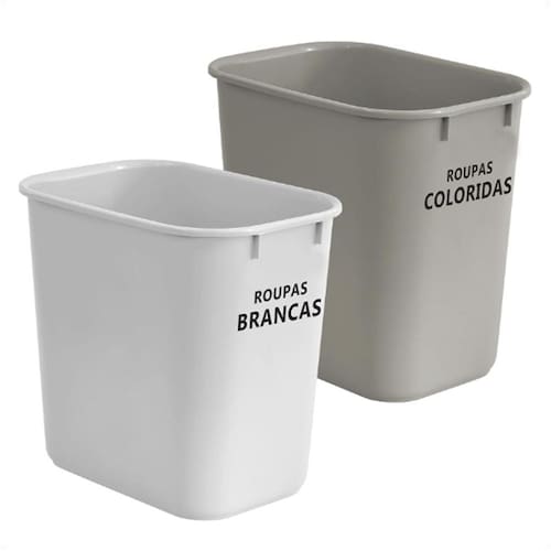 Fabricado em polipropileno, este conjunto de dois cestos é fácil de limpar e separa rapidamente toda a roupa suja na sua lavanderia mantendo o ambiente limpo e organizado. Tem alta resistência e longa durabilidade, com capacidade de 24l cada cesto, ótimo acabamento e bordas arredondadas. Na cor branca para roupas claras e brancas e gelo para roupas coloridas. Possui sistema de anti travamento, facilitando seu empilhamento quando não estiver em uso ocupando o mínimo de espaço. Ideal para lavanderia, área de serviço, quarto, banheiro.