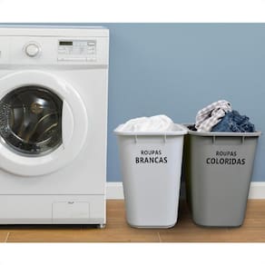 Fabricado em polipropileno, este conjunto de dois cestos é fácil de limpar e separa rapidamente toda a roupa suja na sua lavanderia mantendo o ambiente limpo e organizado. Tem alta resistência e longa durabilidade, com capacidade de 24l cada cesto, ótimo acabamento e bordas arredondadas. Na cor branca para roupas claras e brancas e gelo para roupas coloridas. Possui sistema de anti travamento, facilitando seu empilhamento quando não estiver em uso ocupando o mínimo de espaço. Ideal para lavanderia, área de serviço, quarto, banheiro.