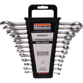 Jogo de chave combinada Starfer com 12 peças, indicada para aperto e desaperto de porcas, parafusos quadrados e sextavados.