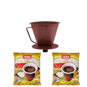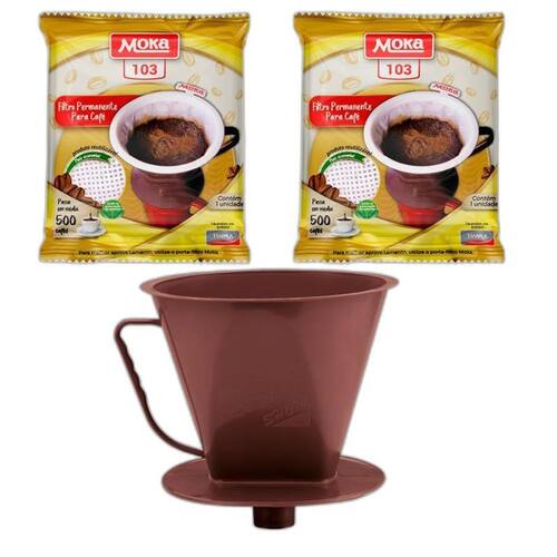 Kit 2 coador filtro moka permanente 103 + porta filtro com funil leve mais praticidade, economia e sustentabilidade para a sua cozinha com o kit coador moka 103 ideal para preparar aquele café fresquinho a qualquer hora do dia, esse kit vem com filtros permanentes e um porta filtro com funil acoplado, facilitando o uso e garantindo o encaixe perfeito na sua garrafa. Destaques do kit: - filtros reutilizáveis em feltro sintético tnt - mais economia e menos resíduos. - funil integrado ao suporte - praticidade no encaixe e no uso. - design compacto e funcional - fácil de guardar e usar em qualquer ambiente. - limpeza simples - basta descartar o pó e enxaguar o filtro. Modo de uso: Posicione o filtro moka no porta filtro. Adicione o café de sua preferência e despeje a água quente. Após o uso, descarte o pó e lave o filtro com água corrente. Pronto seu filtro está limpo e pronto para o próximo café. Especificações do produto: Filtro moka permanente 103: - diâmetro: 13,8 cm - profundidade: 15 cm - material: feltro sintético de polipropileno tnt Porta filtro com funil 103: - altura: 13 cm - diâmetro da boca: 13,5 cm - diâmetro da base: 12 cm - material: plástico resistente conteúdo da embalagem: - 2 filtros moka permanente 103 - 1 porta filtro com funil acoplado 103 Marca: Não Informado