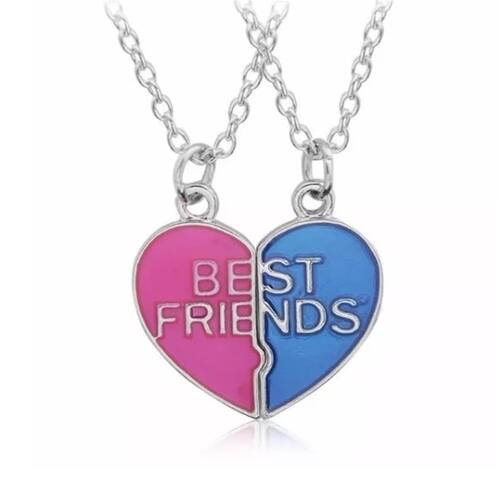 2 Colares Best Friends Colorido Folheado A Prata