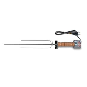 Espeto Giratório Elétrico 127V Rotary Speto=======================================================================Use em vários lugares: em casa, na praia, no campo, no churrasco do futebol.Ele é prático.Super resistente!Design Exclusivo com motor proporcional ao cabo, não atrapalha na hora do uso!=======================================================================Com regulagem mínimo 47cm e máximo 61cmSuporta até 3,5kg de carneChapa de apoio frontal InoxCabo de madeira MaciçaVoltagem 127VBaixo consumo de energiaDispense o uso de pilhas com o Rotary Speto Elétricol!=======================================================================Cabo de energia não removivel, com 1,35m de comprimentoNão possui botão de liga/desliga=======================================================================Motor 4 RPM