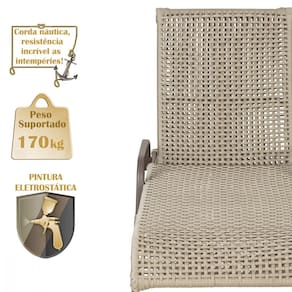 Produto conhecido como: Espreguiçadeira reclinável, Espreguiçadeira em alumínio, Espreguiçadeira com encosto ajustável, Espreguiçadeira para área externa, Espreguiçadeira para piscina, Espreguiçadeira resistente ao tempo, Espreguiçadeira moderna, Espreguiçadeira confortável, Móveis para área externa, Móveis de alumínio para jardim, Corda náutica para móveis, Espreguiçadeira leve e durável, Design sofisticado para áreas externas, Decoração para varanda e piscina, Espreguiçadeira resistente ao sol e chuva