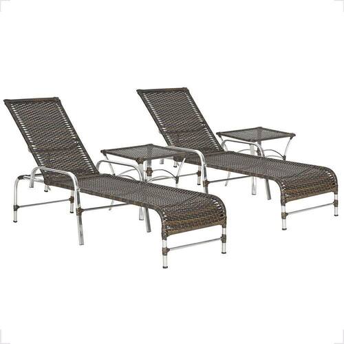 2 Espreguiçadeira Catar E 2 Mesa Garden Alumínio E Fibra Pedra Ferro