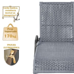 Produto conhecido como: Espreguicadeira reclinavel, Espreguicadeira em aluminio, Espreguicadeira com encosto ajustavel, Espreguicadeira para area externa, Espreguicadeira para piscina, Espreguicadeira resistente ao tempo, Espreguicadeira moderna, Espreguicadeira confortavel, Moveis para area externa, Moveis de aluminio para jardim, Corda nautica para moveis, Espreguicadeira leve e duravel, Design sofisticado para areas externas, Decoracao para varanda e piscina, Espreguicadeira resistente ao sol e chuva.