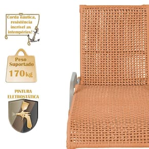 Produto conhecido como: Espreguicadeira reclinavel, Espreguicadeira em aluminio, Espreguicadeira com encosto ajustavel, Espreguicadeira para area externa, Espreguicadeira para piscina, Espreguicadeira resistente ao tempo, Espreguicadeira moderna, Espreguicadeira confortavel, Moveis para area externa, Moveis de aluminio para jardim, Corda nautica para moveis, Espreguicadeira leve e duravel, Design sofisticado para areas externas, Decoracao para varanda e piscina, Espreguicadeira resistente ao sol e chuva.