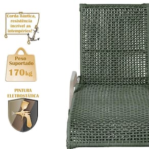 O encosto reclinavel permite ajuste perfeito para seu conforto, enquanto a corda nautica trancada proporciona um toque elegante e ergonomico.