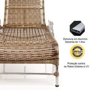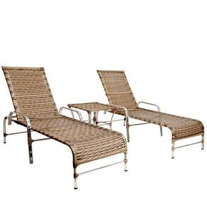 2 Espreguiçadeiras Esteira Catar De Alumínio + 1 Mesa De Centro Garden Piscina Cappuccino