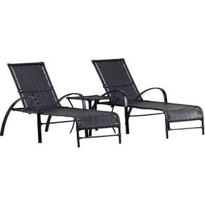 2 Espreguiçadeiras e Mesa Garden em Alumínio Piscina, Jardim com Pintura Eletrostática e Regulagem Trama - Marrom Cacau