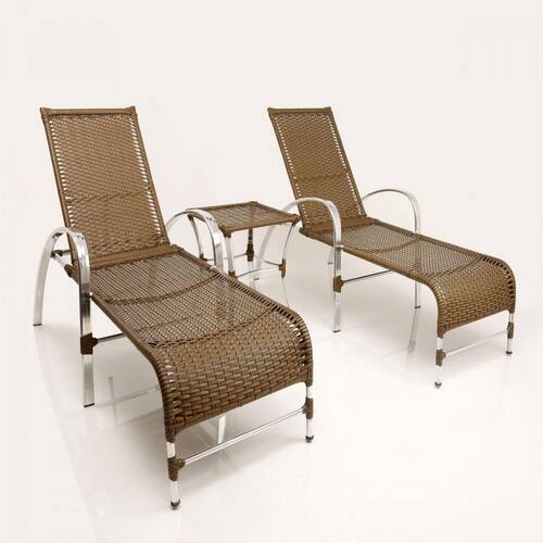 2 Espreguiçadeiras Garden e Mesa em Alumínio para Piscina Trama
