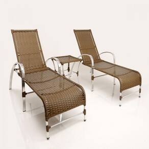 2 Espreguiçadeiras Garden e Mesa em Alumínio para Piscina Trama - Marrom Cacau