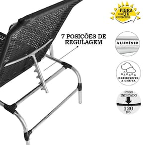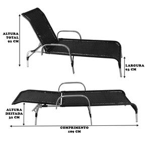 2 Espreguiçadeiras Havaí em Fibra Sintética e Alumínio Polido com 7 Posições Panero Móveis