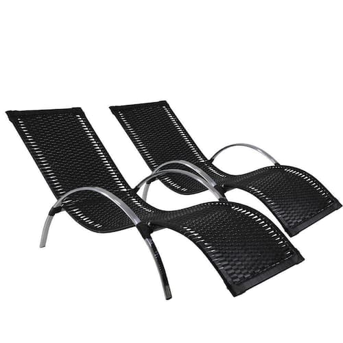 2 Espreguiçadeiras Ilha Do Mel Fibra Sintética Preta Alumínio Polido