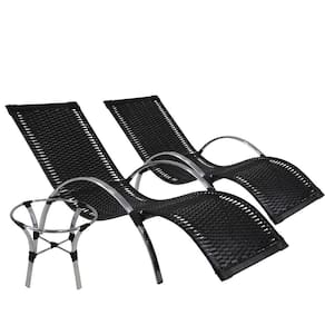 2 Espreguiçadeiras Ilha Do Mel Fibra Sintética Preta E 1 Mesa Centro Garden Alumínio Polido