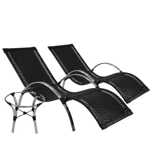 2 Espreguiçadeiras Ilha do Mel com Mesa de Centro Garden em Fibra Sintética e Alumínio Polido Panero Móveis
