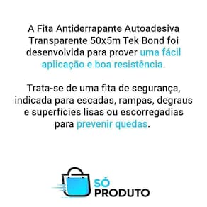 O kit com duas fitas antiderrapantes autoadesivas 50x5m da tekbond é um produto desenvolvido para garantir a segurança e a proteção em áreas de circulação de pessoas. A fita antiderrapante é ideal para escadas, rampas, degraus e outras superfícies lisas ou escorregadias que podem causar quedas e acidentes. A fácil aplicação da fita é um de seus principais destaques. Graças ao adesivo autoadesivo de alta qualidade, a instalação é rápida e simples, não requerendo ferramentas ou habilidades especiais. Além disso, a fita adere às superfícies seguramente, garantindo uma fixação forte e duradoura. A qualidade e a resistência do kit com duas fitas antiderrapantes autoadesivas 50x5m da tekbond são inegáveis. Sua capacidade de desempenho em condições adversas, como intempéries e altas temperaturas, faz dela uma opção ideal para uso em ambientes externos e internos. A fita é resistente a raios uv, garantindo sua durabilidade em áreas expostas ao sol. A fita antiderrapante autoadesiva da tekbond é uma excelente opção para quem busca proteção e segurança em áreas de circulação de pessoas, como áreas residenciais, hospitais, condomínios comerciais, escolas, universidades, bancos, shopping centers e outros locais de grande circulação. A fita é capaz de reduzir o risco de quedas e acidentes, proporcionando um ambiente mais seguro e protegido. Com um rolo de 50x5m, o kit com duas fitas antiderrapantes autoadesivas da tekbond é uma opção econômica e prática para diversas aplicações. A fita é antiderrapante e autoadesiva, facilitando sua instalação e manutenção. Além disso, sua durabilidade e resistência garantem uma longa vida útil, proporcionando um ambiente mais seguro e protegido. Em resumo, o kit com duas fitas antiderrapantes autoadesivas 50x5m da tekbond é um produto de alta qualidade e eficiência, projetado para garantir a segurança e a proteção em áreas de circulação de pessoas. Sua fácil aplicação, resistência às intempéries e às altas temperaturas, e sua capacidade antiderrapante faz dela uma escolha ideal para uso em ambientes internos e externos. Se você busca proteção e segurança em áreas de grande circulação, o kit com duas fitas antiderrapantes autoadesivas 50x5m da tekbond é a escolha certa para você. As imagens são meramente ilustrativas