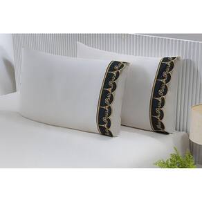 2 fronhas 50cmx70cm 100% algodão 200 fios barrado bordado paris dourado no preto Par de fronha avulsa 100% algodão percal 200 fios barrado bordado richilieu
