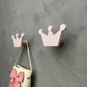 2 Ganchos de parede infantil menina decoração formatos rosa - Cor: Coroa