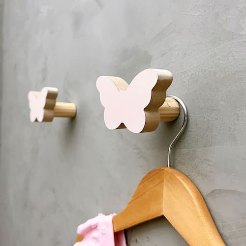 A face vai colada com super cola e acaba sendo apenas decorativa, pois é o suporte quem recebe o esforço, suportando até 5 Kg. Anúncio referênte à 2 unidades. Modelo: Borboleta Tamanho da face: 6,0cm X 4,0cm; Material: MDF laminado 15mm melamínico | borda cru Cor: Rosa, Azul, Branco e Cinza
