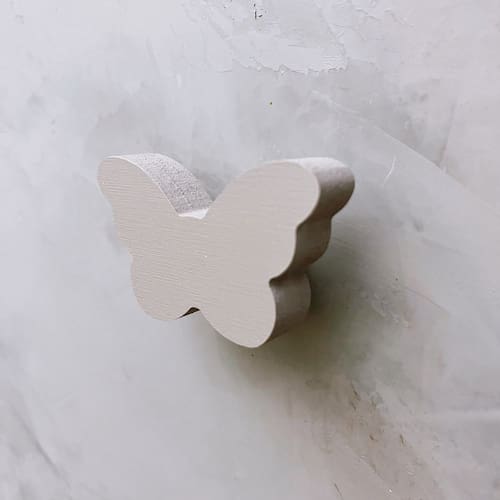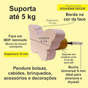 A face vai colada com super cola e acaba sendo apenas decorativa, pois é o suporte quem recebe o esforço, suportando até 5 Kg. Anúncio referênte à 2 unidades. Modelo: Borboleta Tamanho da face: 6,0cm X 4,0cm; Material: MDF laminado 15mm melamínico | borda pintada Cor: Rosa, Azul, Branco e Cinza