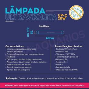 Composição do kit: 2 lâmpadas germicida de 20W T8 UV-C.