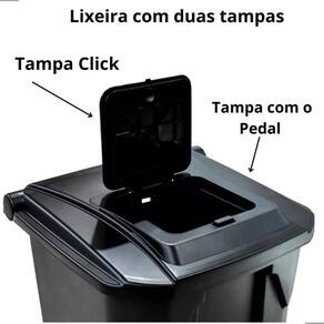 2 lixeiras 60l preta com roda/pedal lixo grande reforçada O kit contém: - 2 lixeiras reciclável 60 litros c/roda pedal tampa click preta - arqplast Lixeira com roda e pedal tampa click 60 litros recicláveis preta arqplast Estes cestos com pedal são produzidos em polipropileno de alta resistência e design arrojado, são indicados para áreas internas e externas de edifícios comerciais, áreas laboratoriais, hospitalares e alimentícias e até residências. Sua tampa com sistema de abertura e fechamento através de pedal promove a vedação do coletor evitando a dispersão de odores e a entrada de insetos, além de evitar os riscos de contaminação. são produzidas de acordo com as mais rigorosas normas da vigilância sanitária, trazendo segurança, confiabilidade e durabilidade aos seus compradores, com a de ser o melhor produto do mercado em sua categoria. nformações gerais: Com tampa articulável com pedal Tampa click Rodinhas traseiras Leve e prático para transporte. Lixeira para produtos recicláveis. dimensões: comprimento: 42,4cm Largura: 40,4cm Altura: 60,5cm