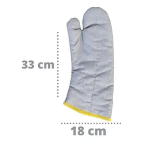 A luva possui um cano longo que dá maior segurança no manuseio dos recipientes, protegendo também o seu antebraço, minimizando o risco de encostar em algum lugar na hora de remover algo do forno / freeze r/ geladeira.