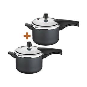 Componentes do kit: -2 panelas 4,5 vancouver grafite - tramontina- não indicado para fogão indução.Panela pressão 4,5 lts antiaderente tramontina vancouver descrição ficha técnica:modelo vancouver starfloncód. 20582/620 grafitecód. 20582/720 vermelha eficiente e segura.Produzida em alumínio com revestimento interno e externo em antiaderente starflon t1tampa em aluminio com acabamento externo polido e interno satinado tampa não é antiaderente .Alças e cabo superior e inferior em baquelite.Sitema de segurança lateral.Válvula de segurança.Válvula de trabalho alívio .- revestimento antiaderente starflon.- maior resistência á desgaste por fricção, raspagem.- pode cozinhar fogão gás, elétrico e também vitrocerâmico.- fácil manuseio e limpeza.- capacidade 4,5l.- 1 unidade por embalagem.- 3 sistema de segurança 1 cabo e 2 na tampa. peso líquido: 1,6 kgpeso bruto: 1,75 kgmedidas internas panela : 19,5cm diâmetro x 14,5 alt. verifique o nivel máxima informado no interior panela medida externa: 22,9cm a x 40,8cm l x 23,1 p - mais detalhes, na foto do anuncio .Expecificação da embalagem do kit:peso bruto: 3,5kgmedida embalagem: 21 cm alt x 46cm l x 39cm p.Perguntas frequentes:- produto novoSim, , lacrado e de fábrica.- qual a garantiaGarantia é de 12 meses contra defeito de fábricação.- quantos litros4,5l - medidas internas 19,5cm diâmetro x 14,5 alt. verifique o nivel máxima informado no interior panela . Marca: Não Informado