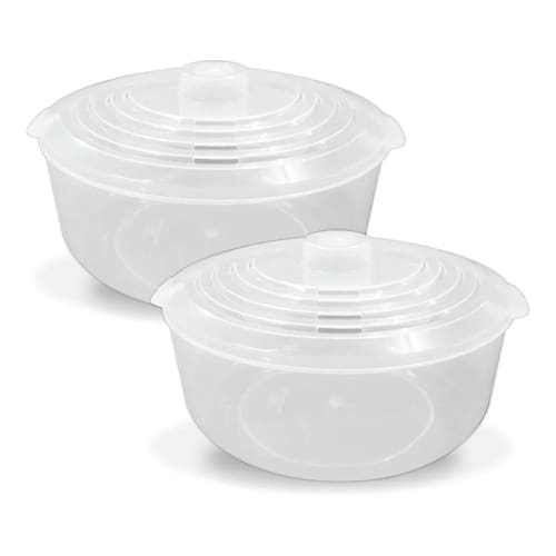 2 Panelas Multiuso para Microondas, ideais para preparo de arroz, legumes e pipoca. Práticas e versáteis para o dia a dia.Lâmpada piloto