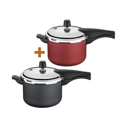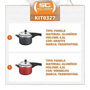 Componentes do kit:- 1 panela 4,5 vancouver grafite - tramontina- 1 panela 4,5 vancouver vermelho - tramontina- não indicado para fogão indução.Panela pressão 4,5 lts antiaderente tramontina vancouver descrição ficha técnica:modelo vancouver starfloncód. 20582/620 grafitecód. 20582/720 vermelha eficiente e segura.Produzida em alumínio com revestimento interno e externo em antiaderente starflon t1tampa em alumínio com acabamento externo polido e interno satinado tampa não é antiaderente .Alças e cabo superior e inferior em baquelite.Sitema de segurança lateral.Válvula de segurança.Válvula de trabalho alívio .- revestimento antiaderente starflon.- maior resistência á desgaste por fricção, raspagem.- pode cozinhar fogão gás, elétrico e também vitrocerâmico.- fácil manuseio e limpeza.- capacidade 4,5l.- 1 unidade por embalagem.- 3 sistema de segurança 1 cabo e 2 na tampa peso líquido: 1,6 kgpeso bruto: 1,75 kgmedidas internas panela : 19,5cm diâmetro x 14,5 alt. verifique o nivel máxima informado no interior panela medida externa: 22,9cm a x 40,8cm l x 23,1 p - mais detalhes, na foto do anuncio .Expecificação da embalagem do kit:peso bruto: 3,5kgmedida embalagem: 21 cm alt x 46cm l x 39cm p.Perguntas frequentes:- produto novoSim, , lacrado e de fábrica.- qual a garantiaGarantia é de 12 meses contra defeito de fábricação.- quantos litros4,5l - medidas internas 19,5cm diâmetro x 14,5 alt. verifique o nivel máxima informado no interior panela . Marca: Não Informado
