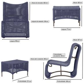 2 Poltrona e Mesa Texas em Alumínio Trama - Azul