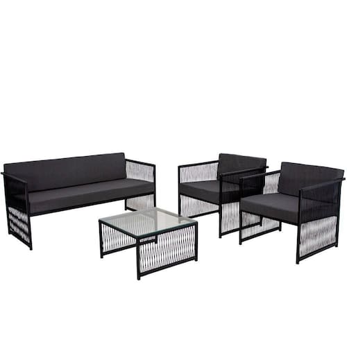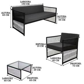 2 Poltronas, 1 Namoradeira e 1 Mesa de Centro Santiago em Fio de Fibra Sintética e Ferro com Pintura Eletrostática Panero Móveis. ;