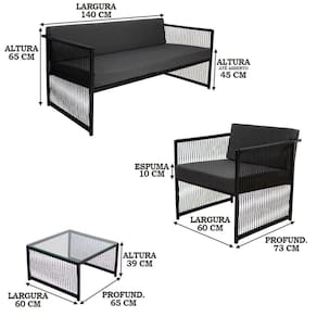 2 Poltronas, 1 Namoradeira e 1 Mesa de Centro Santiago em Fio de Fibra Sintética e Ferro com Pintura Eletrostática Panero Móveis. ;