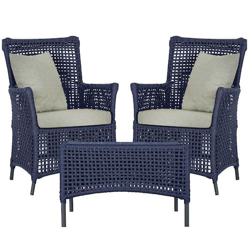 2 Poltronas 1 Mesa Igapó Em Alumínio Preta Corda Náutica E3 Azul