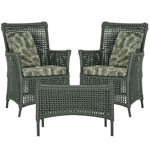 2 Poltronas 1 Mesa Igapó Em Alumínio Preta Corda Náutica E5 Verde
