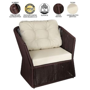 2 Poltronas New York em Alumínio, Corda Náutica e Assento e Mesa com Tampo em Madeira Cumaru Trama