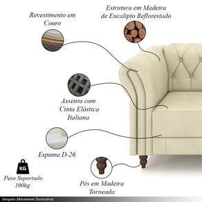 O revestimento em couro de alta qualidade traz um aspecto luxuoso, enquanto os pés torneados fixos em madeira maciça adicionam um charme refinado e garantem estabilidade e durabilidade.