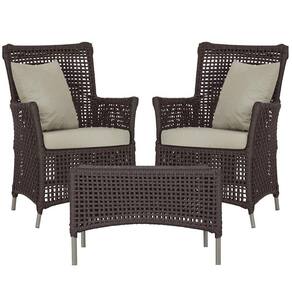 2 Poltronas E 1 Mesa Igapó Alumínio Fendi Corda Náutica E7 Marrom