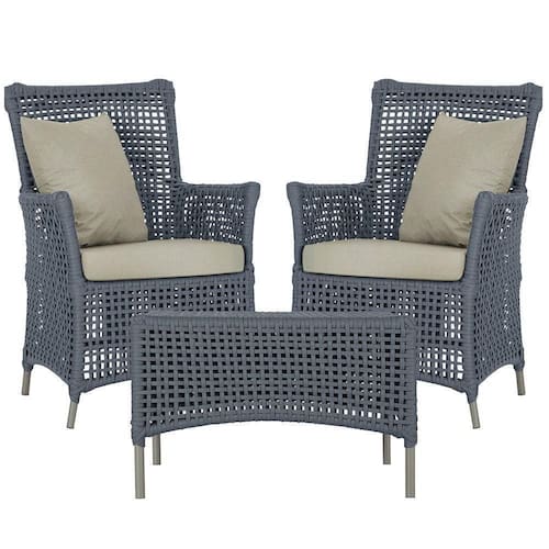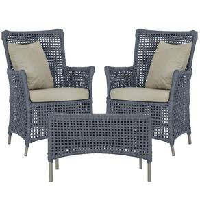 2 Poltronas E 1 Mesa Igapó Alumínio Fendi Corda Náutica E7 Prata