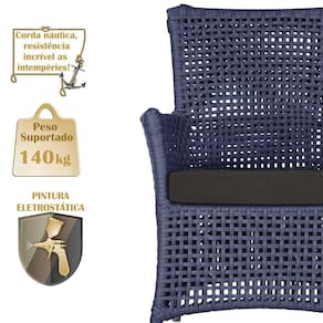 2 Poltronas E 1 Mesa Igapó Alumínio Fendi Corda Náutica E9 Azul