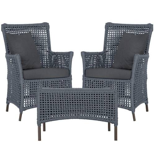 2 Poltronas E 1 Mesa Igapó Alumínio Marrom Corda Náutica E11 Prata