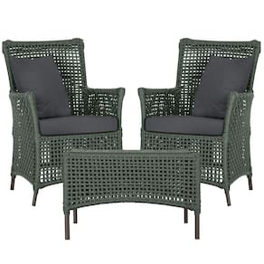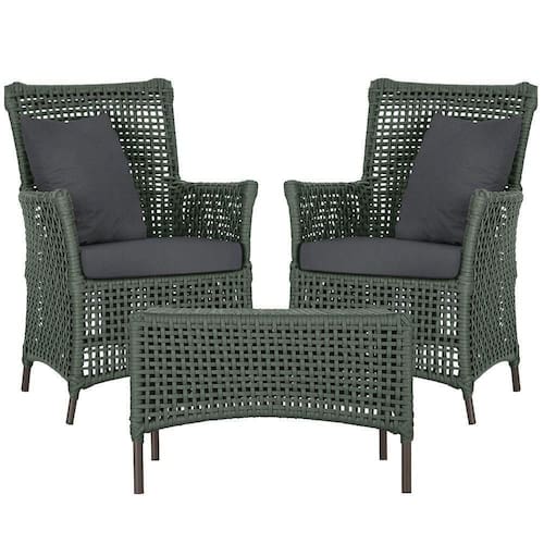 2 Poltronas E 1 Mesa Igapó Alumínio Marrom Corda Náutica E11 Verde