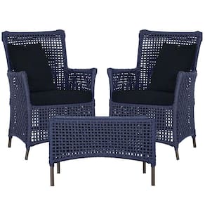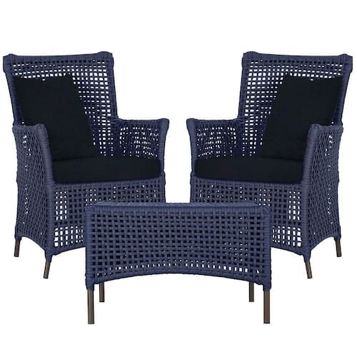 2 Poltronas E 1 Mesa Igapó Alumínio Marrom Corda Náutica E12 Azul