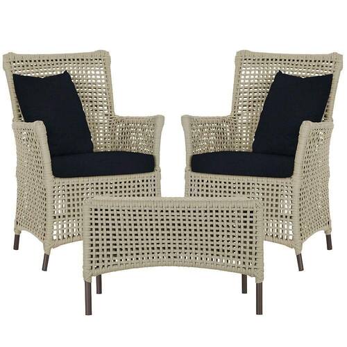 Itens Inclusos: 02 Poltronas e 01 Mesa Igapo em Aluminio Pintura Marrom Corda Nautica Estofado 12