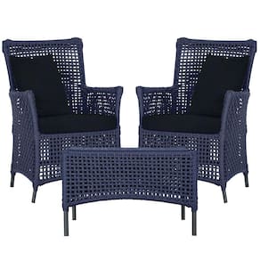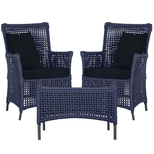 2 Poltronas E 1 Mesa Igapó Alumínio Preta Corda Náutica E12 Azul