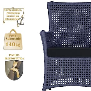 Itens Inclusos: 02 Poltronas e 01 Mesa Igapo em Aluminio Pintura Preta Corda Nautica Estofado 12